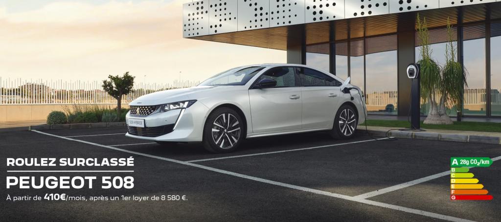 En location longue durée sur 49 mois et pour 40 000 km. Exemple pour la location longue durée (LLD) d’une Peugeot 508 Allure PACK Plug-in Hybrid 225 neuve, hors options. Montants exprimés TTC et hors prestations facultatives. Offre valable du 01/03/2023 au 31/03/2023, réservée aux personnes physiques pour un usage privé pour toute LLD d’une Peugeot 508 hybrid neuve dans le réseau Peugeot participant, sous réserve d’acceptation du dossier par CREDIPAR, loueur et SA au capital de 138.517.008 €, RCS Versailles n° 317 425 981, ORIAS 07004921 (www.orias.fr), 2-10 boulevard de l’Europe 78300 Poissy. Offre non valable pour les véhicules sur le site store.peugeot.fr.
