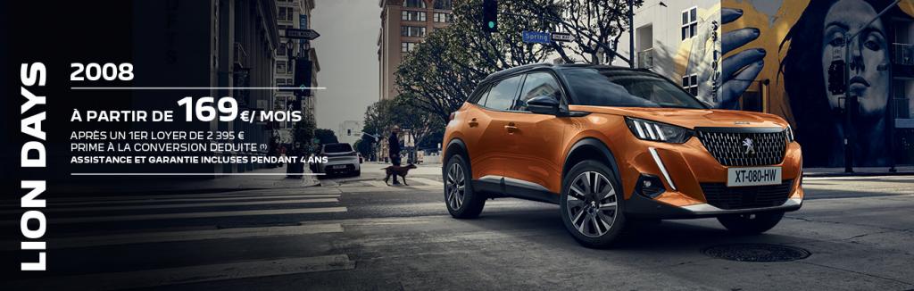(2) Soit une reprise de 3 000€ de votre véhicule éligible à la prime à la conversion. Offre non cumulable avec l'estimation indicative de votre véhicule effectuée sur le site Reprise Peugeot. Le véhicule repris doit être d’une puissance réelle inférieure ou égale à celle du véhicule neuf acheté. Offre réservée aux particuliers, incluant la prime à la conversion en vigueur selon éligibilité, valable du 01/03/2021 au 30/04/2021 pour toute commande d’un 2008 neuf, hors motorisation électrique, passée avant le 30/04/2021 et livrée avant le 30/06/2021 dans le réseau PEUGEOT participant. Offre non valable pour les véhicules au prix Peugeot Webstore et les véhicules sur le site store.peugeot.fr.